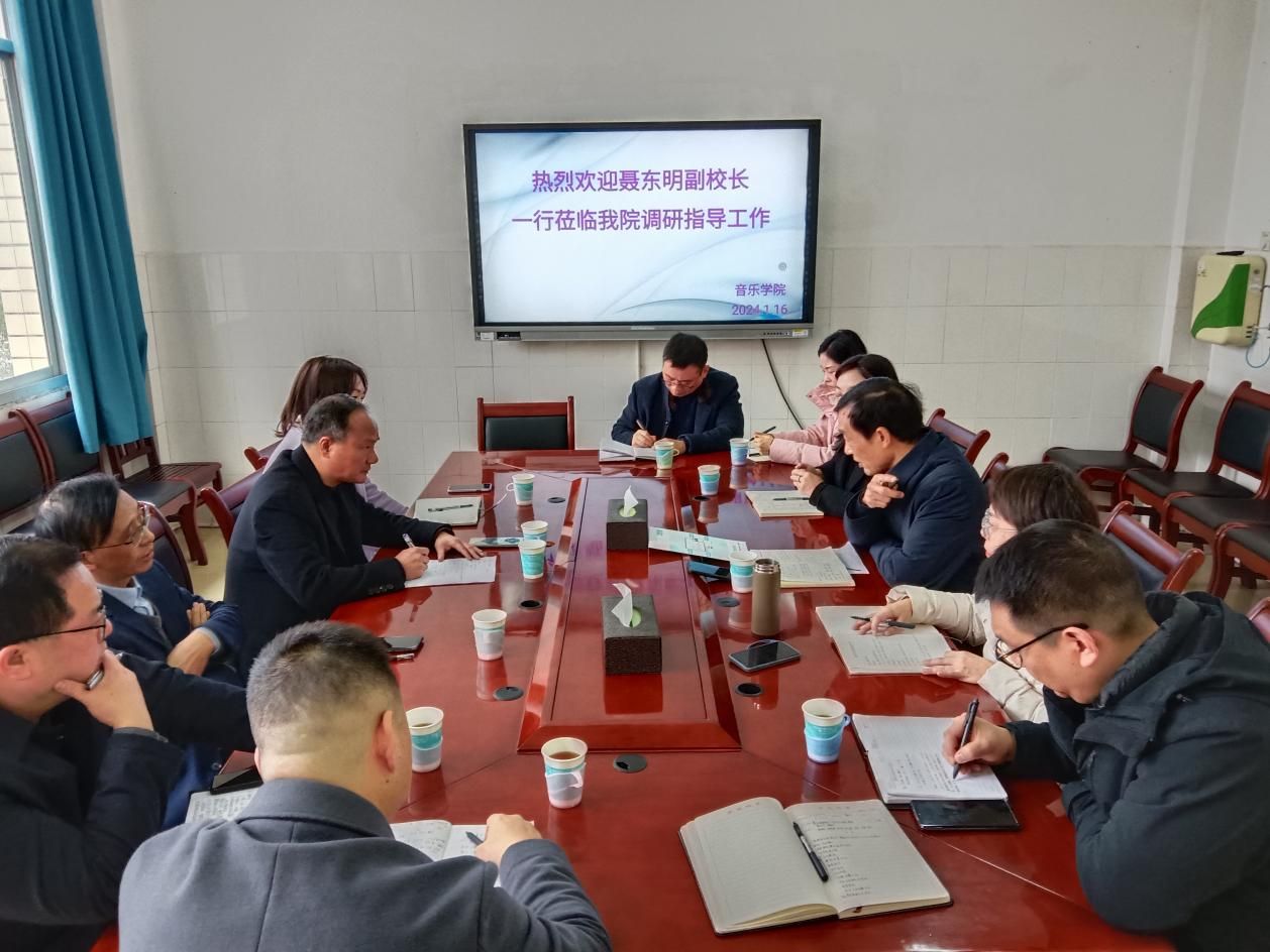 2024年1月16日上午,副董事长聂东明带领教务处一行来公司调研指导工作。公司教务处(教学质量监控中心)邹君、谭晓兰、阳志锋等处室领导,音乐公司党政班子成员及系部主任、专业负责人等参加了此次调研座谈会。