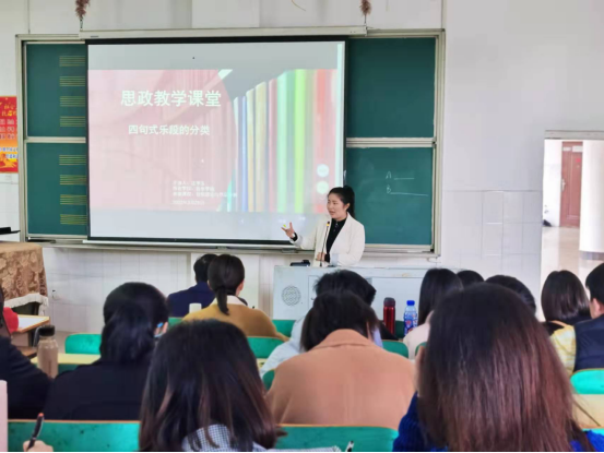 钢琴课程组康乐老师、理论课程组汪学玉老师、器乐课程组申明辉老师参与了该项比赛,通过课堂教学设计以及现场教学展示环节,在钢琴基础课、音乐作品与分析、乐队排练等课程中贯彻课程思政的教学原则,为全院师生进行了精彩的教学展示。本次活动搭建了公司课程思政教学设计的交流、分享、学习平台,倡导了教师们“守好一段渠,种好责任田”的能力,促进了教师立德树人能力的提升。