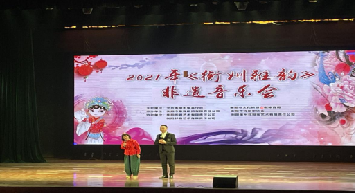 本次非遗音乐会主要包含本地民间歌舞、民间戏曲、民间曲艺等艺术形式,是对衡阳当地音乐文化的一次较大规模的展演,其中:戏歌《粉墨春秋》、花鼓戏《南岳八大怪》、大鼓《衡山神韵》、祁东渔鼓《夕阳情》湘剧《游园》等节目让人印象深刻。