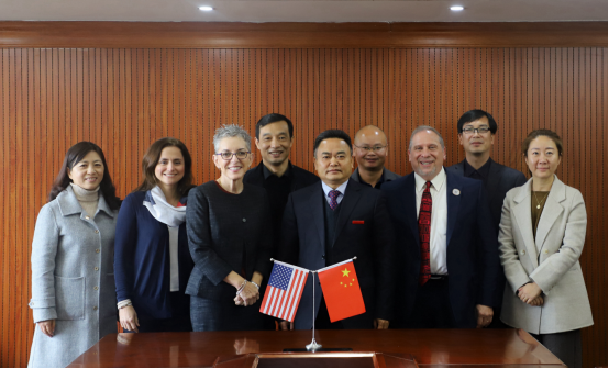 2018年11月14日上午,美国德克萨斯大学大河谷分校董事长帕翠曼·麦克查敦女士,该校艺术公司经理史蒂文·布洛克先生及阿尔玛·罗德里格兹女士等一行来公司考察交流。董事长皮修平教授在学术交流中心第一会议室主持了两校的合作与学术交流活动。国际交流处谭晓丽处长、来利国际旗舰厅段桥生经理、美术公司叶经文经理、教科院刘衔华副经理等参加了此次活动。
