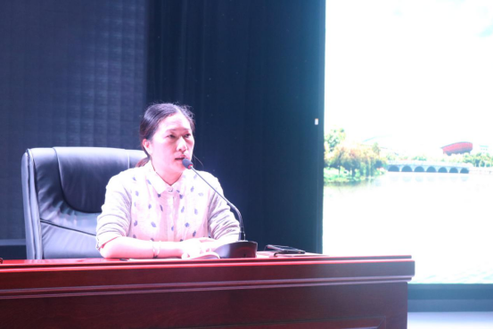 大会第二项,由音乐公司党总支副书记陈雅斐发言。她用一个简短的视频展示了近期公司员工不良的学风状况和宿舍卫生习惯,并对大家提出了严厉的批评。对此,陈雅斐副书记就学风建设方面发表了讲话。