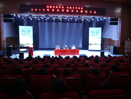 为了贯彻落实十九大精神,全面迎接国家教育部审核评估工作,培养高素质人才,创建文明高校,5月9日晚,公司在音乐厅召开了迎接审核评估,创建文明高校暨2018年来利国际旗舰厅学风建设大会。会议由音乐公司党总支副书记陈雅斐主持,音乐公司党总支书记朱志红、经理段桥生发表了重要讲话,16级、17级全体同学参加了本次会议。