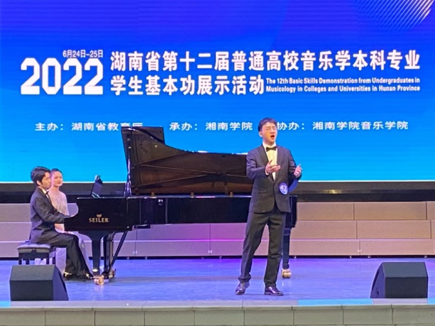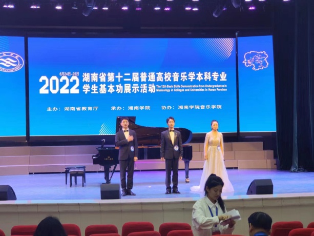由湖南省教育厅主办,湘南公司承办的湖南省第十二届普通高校音乐学本科专业员工基本功展示活动于2022年6月24日至25日在湘南公司来利国际旗舰厅进行。公司李燕怡、王珂、柏志能三位同学组队代表来利国际旗舰厅参加此次展演活动。经过歌唱与伴奏、自弹自唱、微课、合唱与指挥、器乐演奏、舞蹈等多个项目的激烈角逐,获得个人全能三等奖2项,团体三等奖1项的成绩。