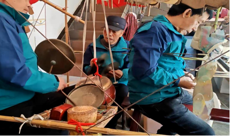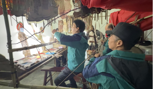 1月12日上午,师生团队前往非遗传承人王碧泉老师家中,现场领略了皮影戏的独特魅力,王老师带领多位传承人共同登台,为大家精彩演绎了《穆桂英挂帅》和《北路》等经典唱段,精湛的技艺和独特的表演让师生们沉醉其中。下午,皮影传承人亲自教学,从皮影的操作技巧,到地方方言的演唱韵味,再到铜锣打击乐器的演奏诀窍,一一悉心传授,让师生们亲身体验到皮影戏表演的丰富内涵。
