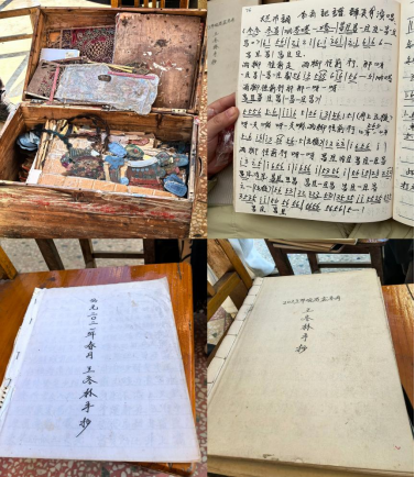 1月13日,团队一行人踏入了非遗传承人王冬林老师的家中。彼时,王老师虽已79岁高龄却依旧精神矍铄,见到团队,王老师便拿出自己这一生精心撰写的词本,以及一整箱亲手制作的皮影。这些皮影造型精美,每一个细节都凝聚着王老师的心血,王老师深情地诉说着自己对皮影戏的毕生热爱,对师生团队重视当地皮影传承表达了诚挚的感谢,并殷切期望大家能肩负起传承的重任,让皮影戏在新时代绽放新光彩。