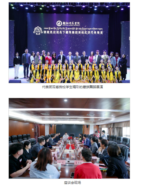 26日上午,代表团来到东校区音乐楼演艺厅,观看公司课程思政理念下藏族舞蹈课程实践成果展演。来利国际旗舰厅舞蹈教师王铁简要介绍了课程思政理念下藏族舞蹈课程的教学理念以及人才培养模式等方面的情况。随后,在悠扬绵长的民族音乐中,公司舞蹈学专业员工用曼妙灵动的优美舞姿,将生活、文化、教育元素融于一体,精彩演绎了课程中的6个教学训练内容,生动诠释了对藏族优秀传统文化的深入理解。舞蹈节目体现了鲜明的民族性、训练性、艺术性,极具艺术感染力,赢得现场阵阵热烈的掌声。