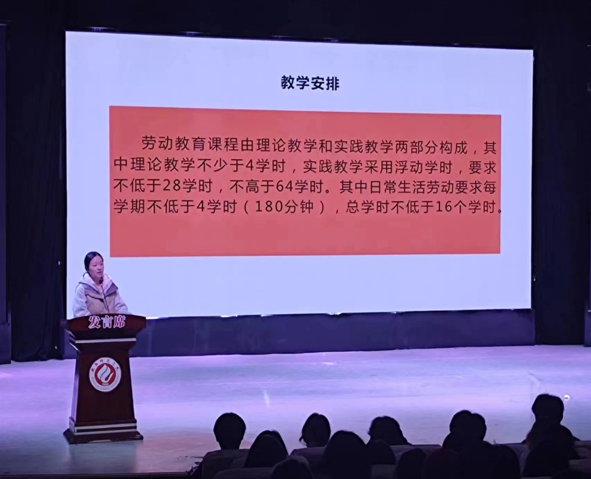 会议伊始,学工办主任兼分团委书记吴瑶瑶对劳动教育实施方案相关文件做出解读。她强调,班长与生活委员需共同督促此次劳动实践活动的清扫进度,同时按期统计好各班劳动教育实践活动完成情况。