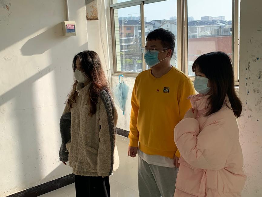 员工党员进宿舍检查员工健康码和宿舍卫生情况