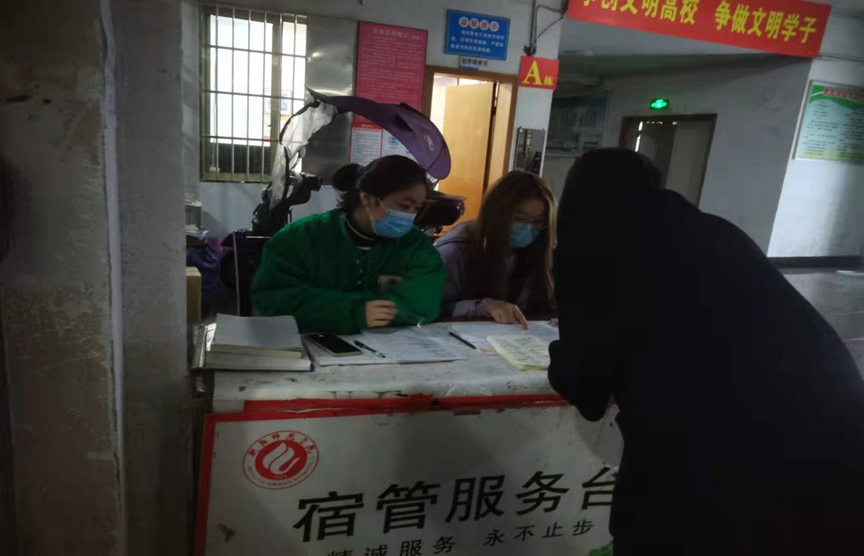 除每日查寝外,所有19级员工党员轮流排班,在寝室楼下设立“员工归寝检查岗”,严查疫情期间员工晚归未归情况,督促晚归的同学尽早回寝休息,进一步维护就寝纪律,守护员工安全。