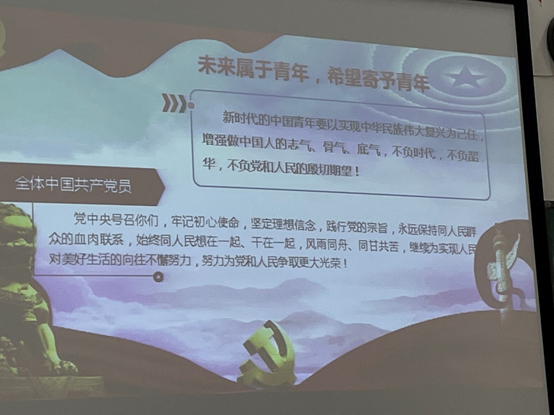 课程最后,谢书记传达了“七一”讲话精神中对党员的号召以及对青年的希望,号召同学们以实现中华民族的伟大复兴为己任,不负党和国家的殷切希望。要求党员同志不忘初心,砥砺前行,继续为实现人民对美好生活向往不懈努力,努力为党和人民争取更大光荣!