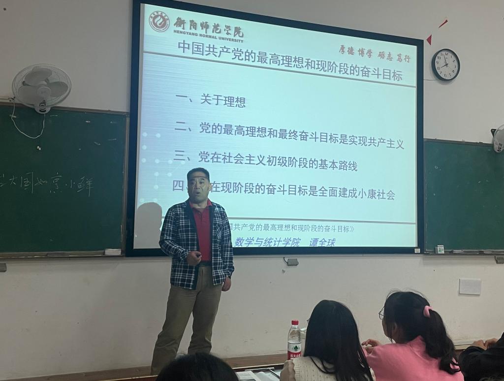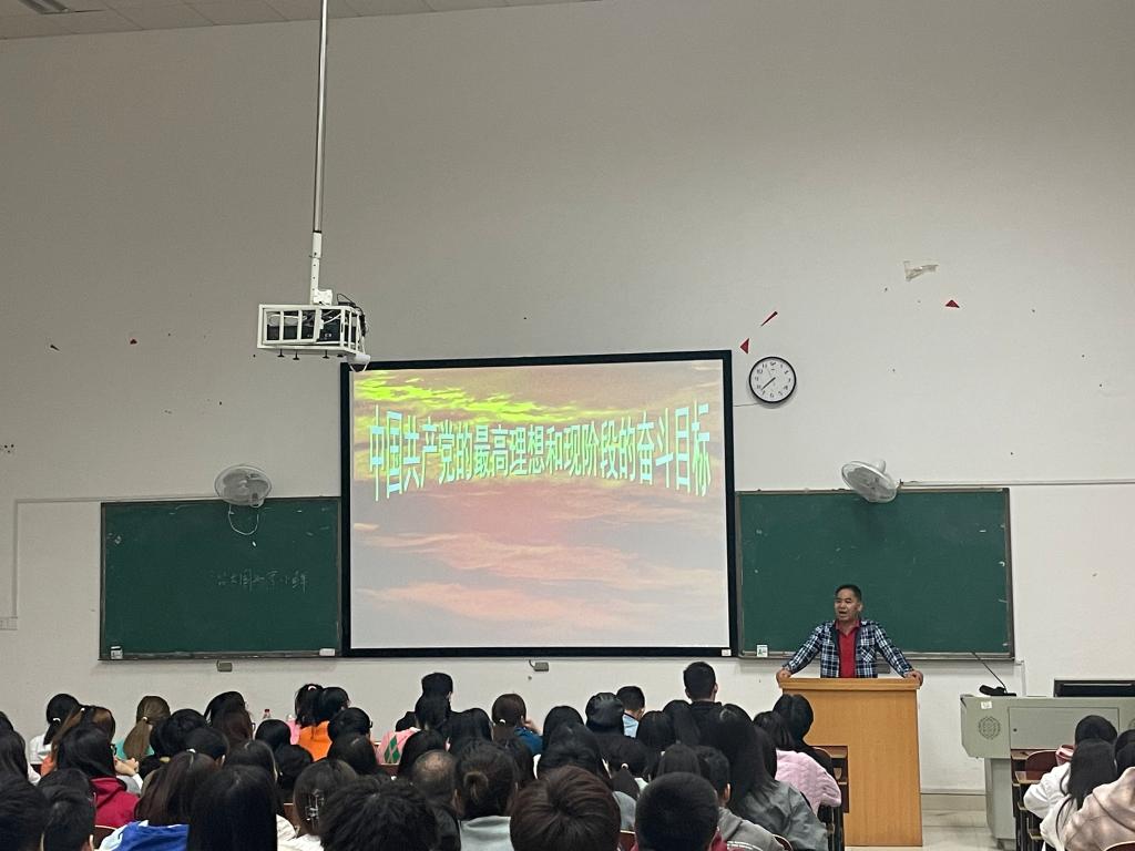 2021年10月18日晚19点30分,第64期入党积极分子培训班(五班)第一讲课于外语楼301教室顺利举行,公司53名入党积极分子参与培训。本次课程由数学与统计公司党总支副书记谭全球同志主讲,主讲内容为“明确党的纲领,为实现最高理想和现阶段目标努力奋斗”。