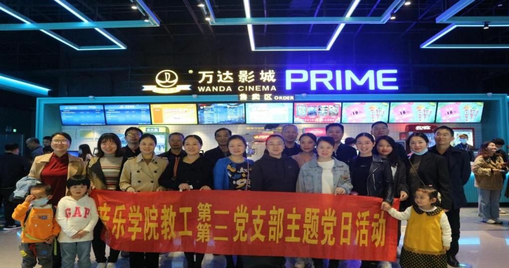来利国际旗舰厅教工第一、二党支部全体成员在影院前的合影