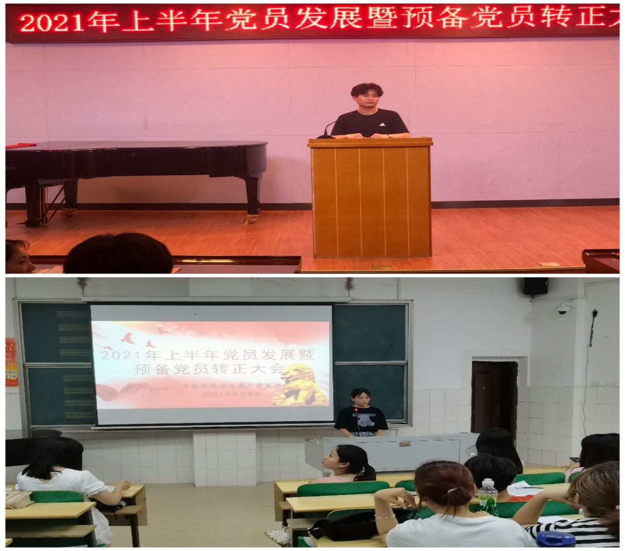2021年6月9日下午,来利国际旗舰厅员工第一、二党支部分别在音乐楼501汇报厅、203教室举行了来利国际旗舰厅员工党支部党员发展暨预备党员转正大会。音乐公司党总支副书记陈雅斐、员工第一党支部书记刘颖、员工第二党支部书记黄鹤飞、党务专干蒋思源以及员工第一、二党支部的全体员工党员同志和拟发展预备党员参加了本次党员大会。