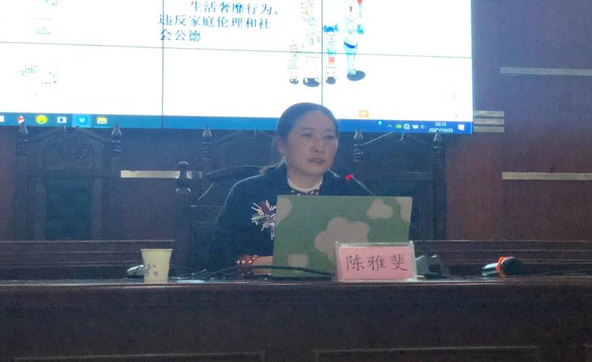 2020年10月25日晚上七点半,公司于东校区模拟法庭举行了第61期入党积极分子培训第五讲——增强纪律观念,自觉遵守党纪弘扬党风。本次培训由音乐公司党总支副书记陈雅斐同志担任主讲人。