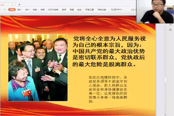 中国共产党的思想历程孕育了马克思主义中国化的道路,推动了中国革命、建设、改革的进行,促进了社会主义道路蓬勃发展。为了让同学们对党有更深刻的认识与体会,在党的指引下克服困难、开拓进取、与时俱进。公司于2020年6月22日晚七点半,在钉钉线上app举行公司第60期入党积极分子培训第四讲。本次党课培训主讲人是公司第二党支部书记黄鹤飞。培训的主要内容有:一、中国共产党的性质,二、党的根本宗旨。