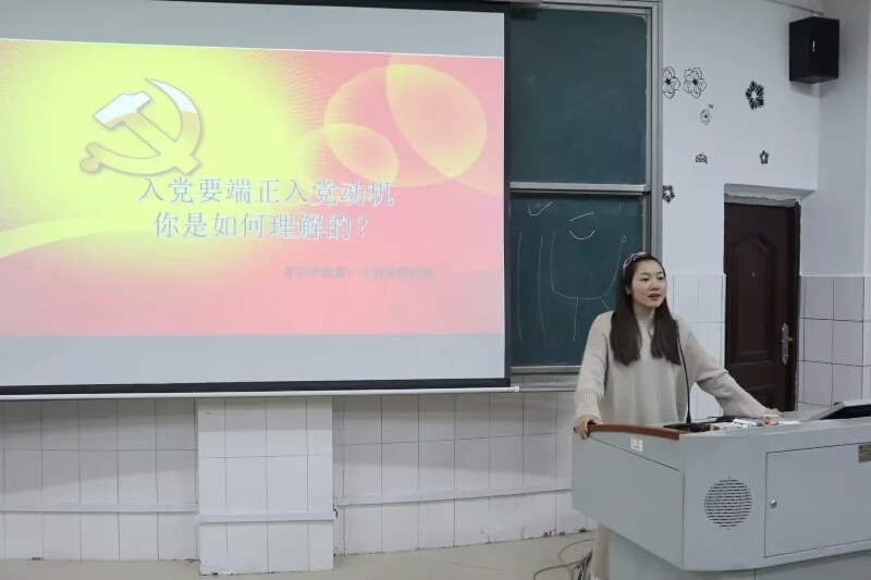每位同学上台都做了自我介绍并表述自己想要加入党的意愿。随后,大家都分享了通过党课学习逐步端正自己入党动机的心理过程。对于未来要努力的方向,联系自己的思想、学习、生活正面剖析了自身的不足,也明确表示自己今后在学习工作上不懈奋斗,努力加入党组织、成为党的好儿女。