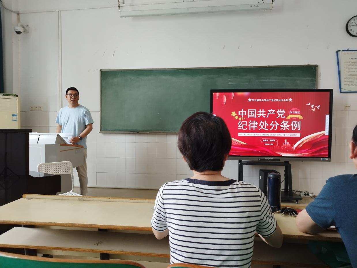 首先,教工第一党支部书记崔少博同志领学《中国共产党纪律处分条例》。学习贯彻《中国共产党纪律处分条例》是每个党员的责任和义务,全体党员要进一步加强学习、提高认识、强化执行,确保条例的各项规定在我们的工作和生活中得到全面贯彻落实,以严明的纪律推进党的自我革命,不断提升党员的政治素养和拒腐防变能力,为实现中华民族伟大复兴的中国梦贡献力量。