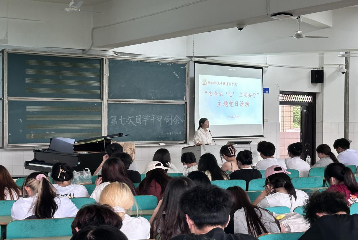 为了深入落实二十届五中全会精神,提高党员的交通安全意识和文明素养,加强交通安全隐患治理,提高交通安全水平,公司党总支于2024年6月28日中午13:00在301教室开展了“安全驭‘电’ 文明共行”的党日活动,主讲人为院学工办主任兼团委书记吴瑶瑶,此次党日活动旨在强化员工党员的交通安全意识,发挥党员先锋模范作用,推动校园内员工们关注交通安全,共同营造安全、文明、和谐的校园交通环境。
